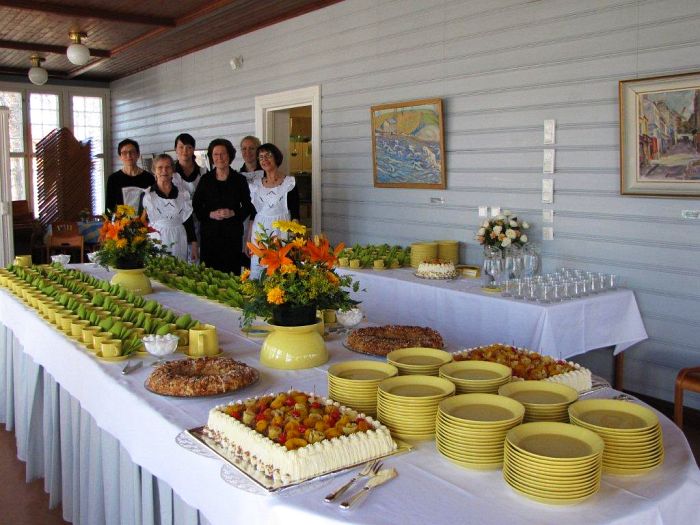 juhlavieraita, joka viipyikin pitkään herkkujen
