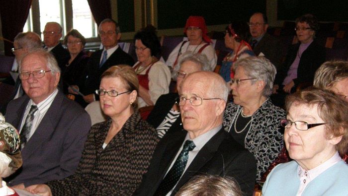 -tarinakirjan sekä lausui kiitoksen sanoja kotiseutuaktivisti Esko Aallolle, joka oli luovuttanut kirjan aineiston seuran käyttöön. Kiitokset saivat myös kirjan toimittaja Matti Aalto sekä kirjan graafikko Heikki Kalliomaa, jotka molemmat olivat juhlassa mukana.