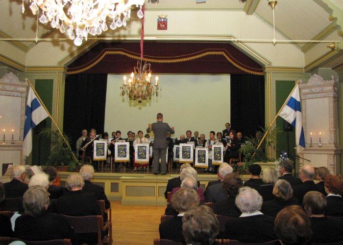 Puhallinorkesteri ja Heinolan Mieslaulajat sekä jousitrio.