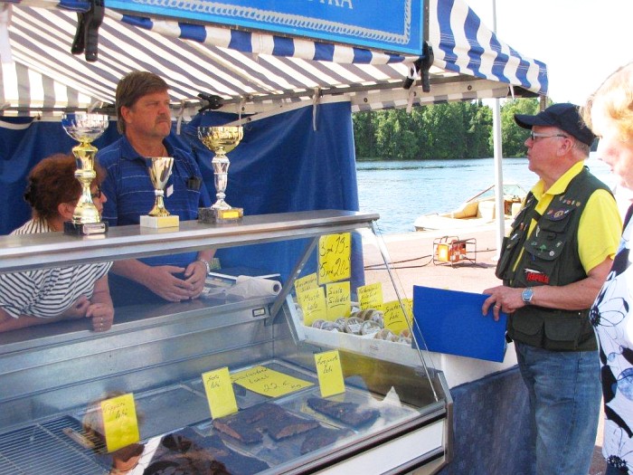 kerta mukana ollut kalatuotteiden myyjä lauantai-illan hauskassa