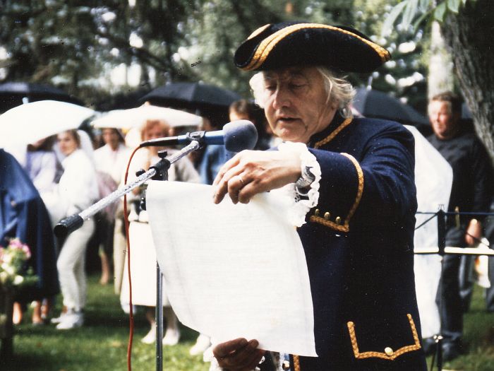 Perinnetori henkilöityi torikivalteriin, Veikko Mykrään (kuva).