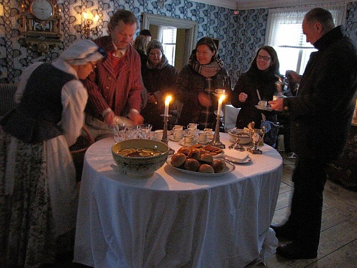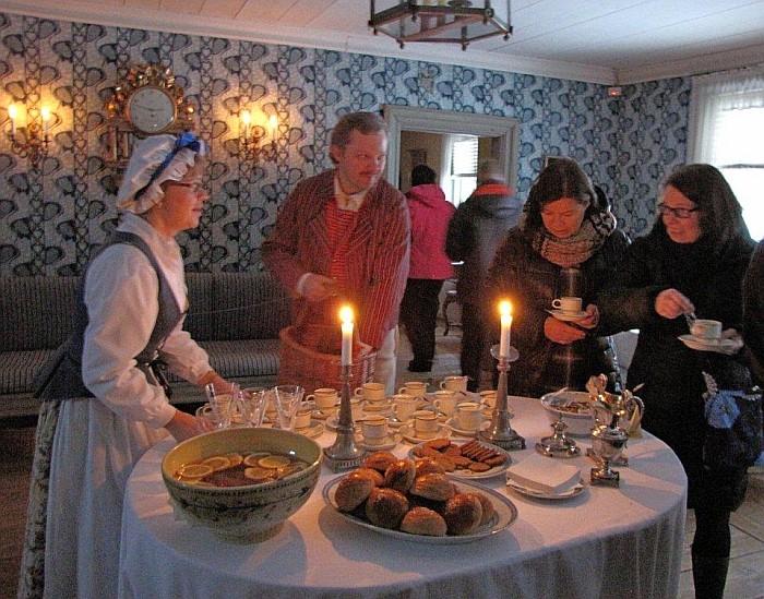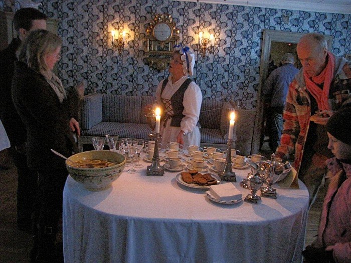 Tarjottavaa oli monenmoista. Aluksi tarjottu vanhan reseptin mukaan tehty booli sai jokaiselta vieraalta kiitoslausumia.