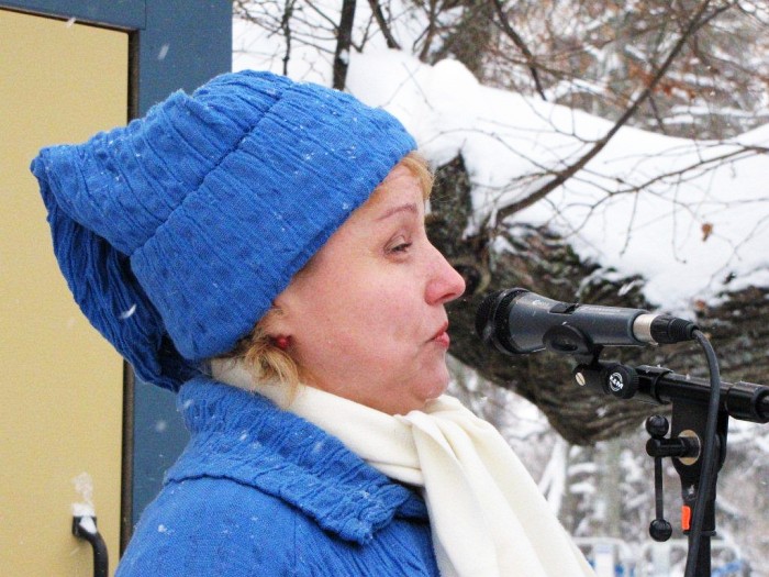Vapunaattona Heinolan Uunoksi valittu Timo Niemelä kävi myös tervehtimässä tapahtumaväkeä ja luki Uuno Kailaan päivään sopivan runonkin Mäenlaskija.