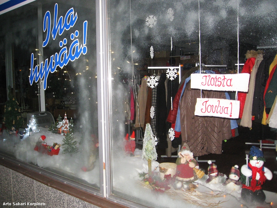 oli saanut uuden jouluisen ilmeen. Liikkeet olivat todella nähneet