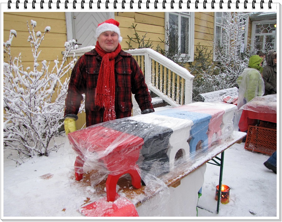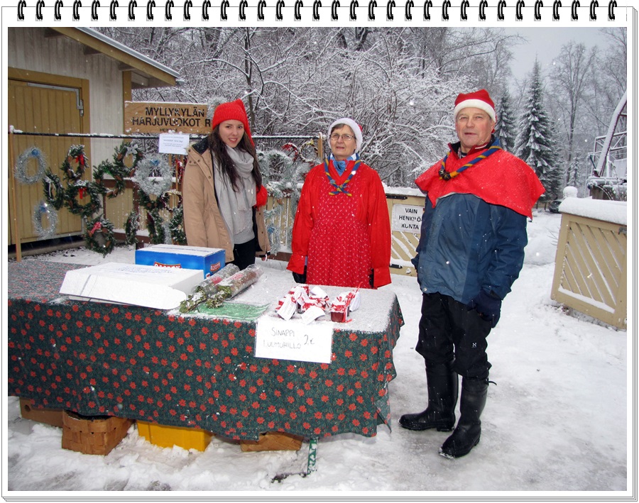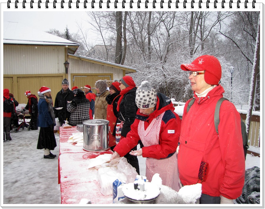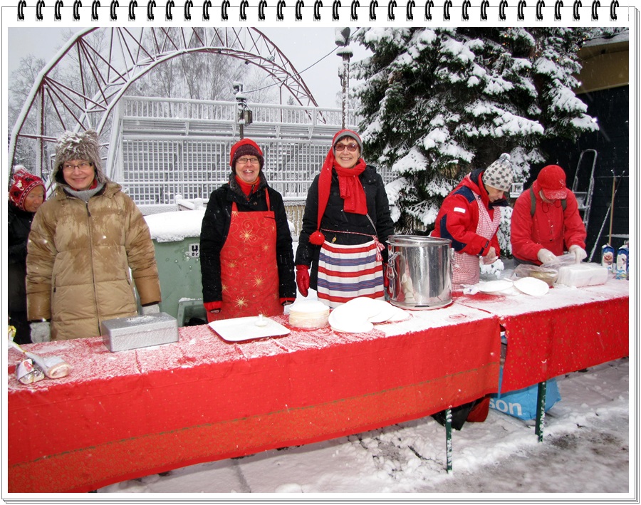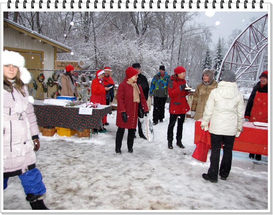tunnelmissa, nautti joulupuurosta ja –makkaroista. Glögistäkin uusien