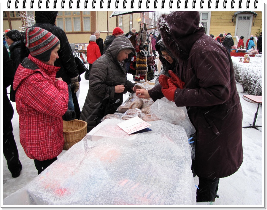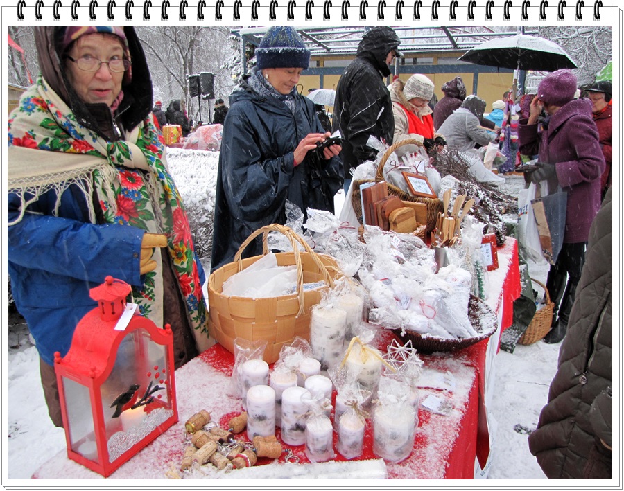 Myyjien pöydiltä, peitteiden alta, ilmestyi kaikkea jouluun kuuluvaa;