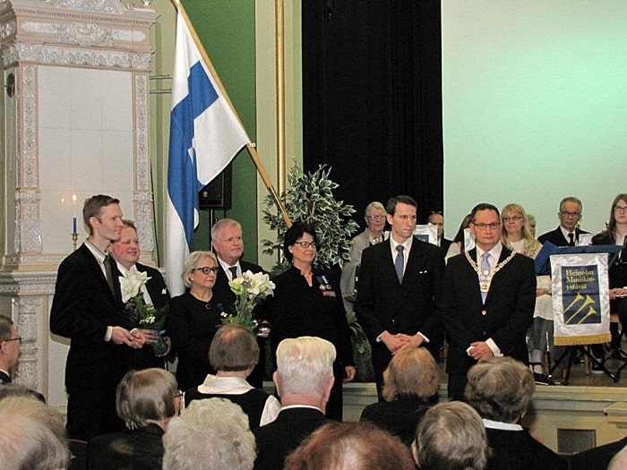 Karl Collanin Hurtti ukon jälkeen juhlayleisö virittäytyi kansallislauluun Maamme.