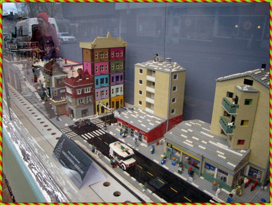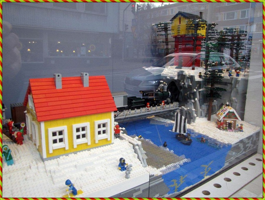 ”Legolandin joulu”-ikkuna, jossa on huomioitu myös paikallisuus.