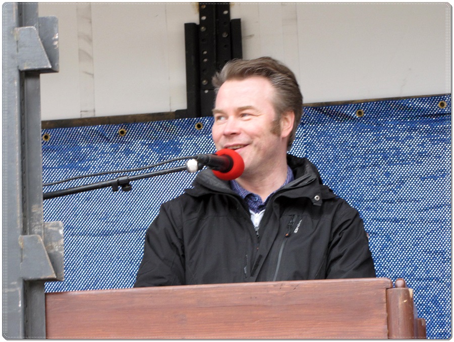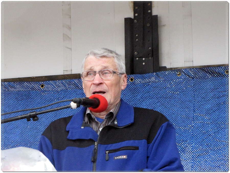 Heinolan torilla. Vaikka sää ei suosinut tilaisuutta, avajaisohjelma