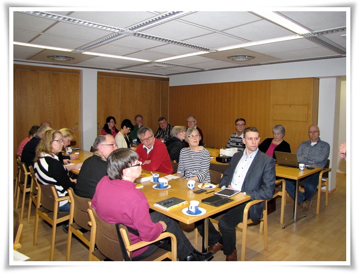 Vieraiden lisäksi kyläiltaan oli kokoontunut kokoustilan täydeltä edustajia 12