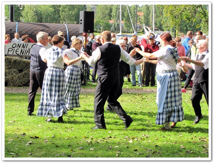 Heinolan Kansantanssijat esiintyivät useaan kertaan puistossa ja toivat omalla osaamisellaan tervehdyksen entisaikojen tanssikulttuurista.