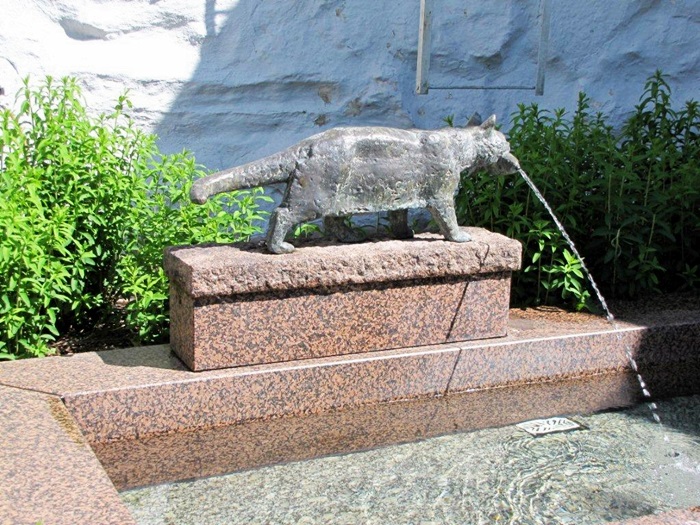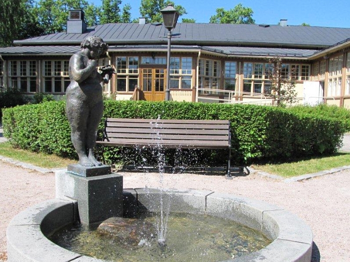 taidemuseon pihassa. Sekä Kalakissa- että Flora–veistos ovat
