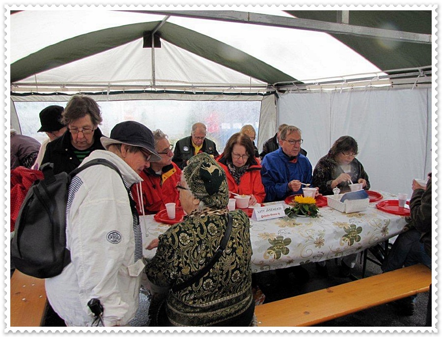 sataprosenttinen yhteisö. 150 litraa lohikeittoa oli käynyt kaupaksi ja