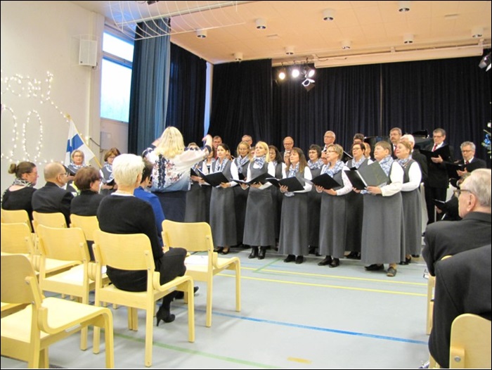 Ursula Hynnisen johtama suurkuoro esitti Maamme-laulun harvoin