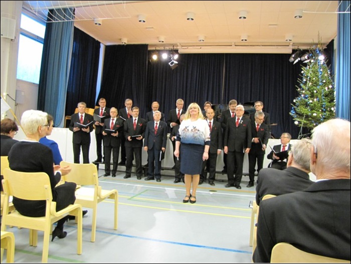 Ensin juhlayleisön eteen asettui Heinolan mieslaulajat, joka tulkitsi Taneli Kuusiston Uuno Kailaan runoon säveltämän Suomalaisen rukouksen.