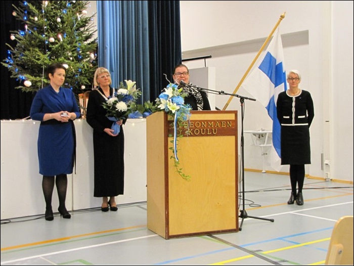 Lumisen aamun kirkastuessa kokoonnuttiin Lyseonmäen koulun juhlasaliin