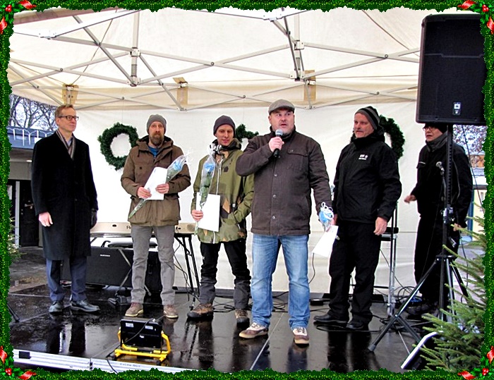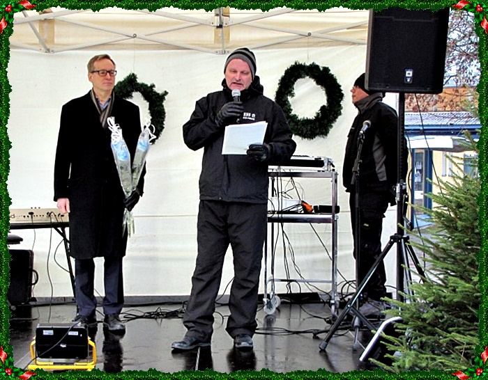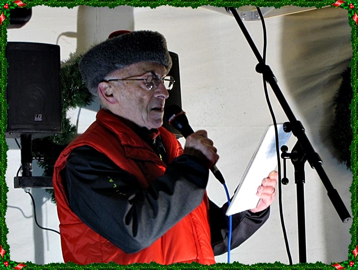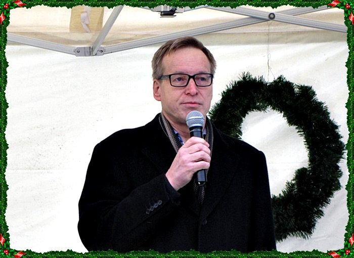 Laulujen välissä Heinola-Seuran puheenjohtaja Kalevi Peltola kertoi joulun avauksen merkityksestä tänä vuonna ja avasi Vuoden 2017 kaunein jouluikkunakilpailun.