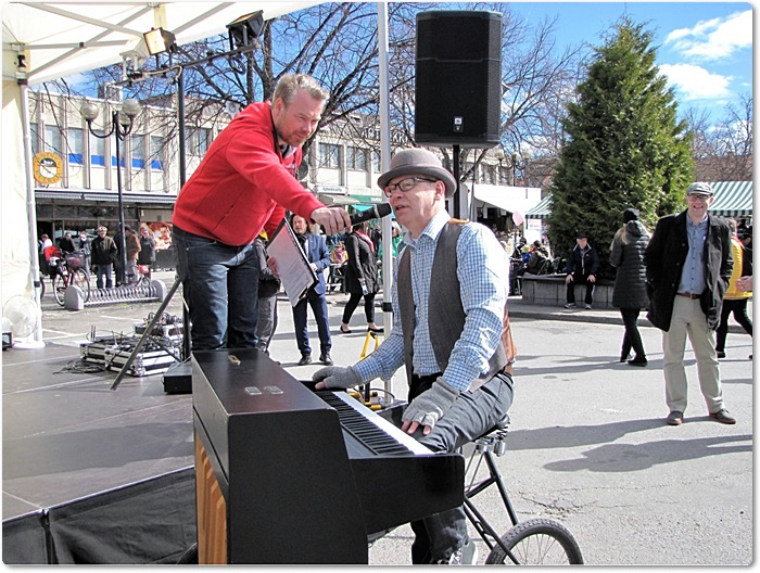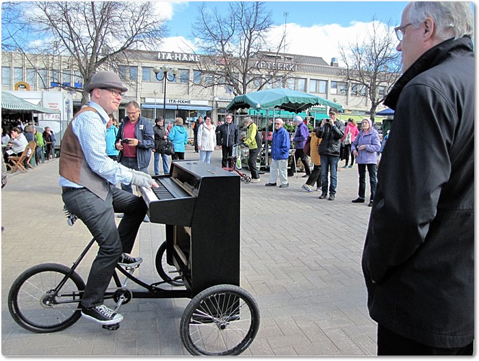 ...ja aivan uutena löytönä liikkuva fillaripianisti Aarno Paakkari, jonka soitosta saivat nauttia myös muualla kuin torilla liikkuneet heinolalaiset.