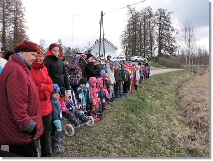 Lusin koulun oppilaat ja Kyllikki-palvelupäivän osanottajat.