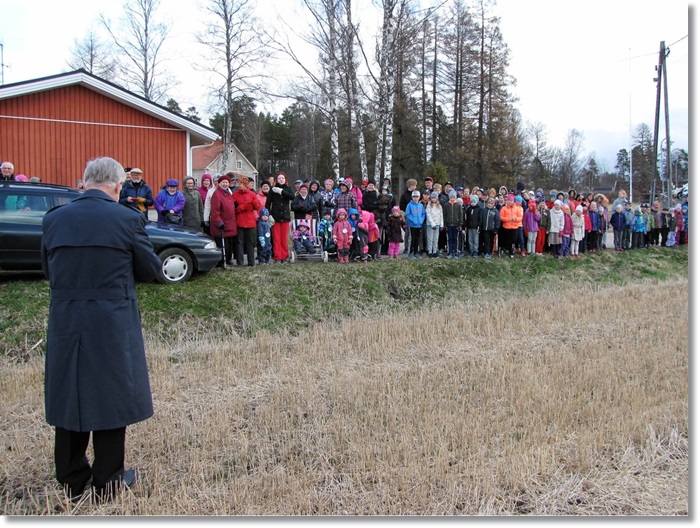 Siunaustapahtuma pellon laidalla päättyi suvivirteen, jonka jälkeen