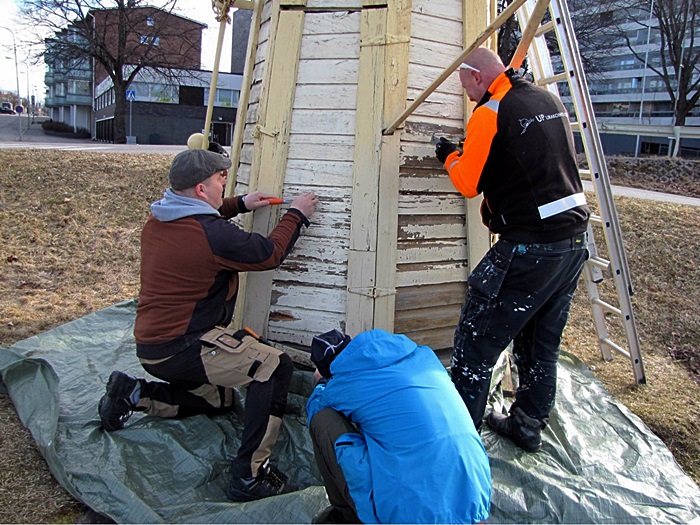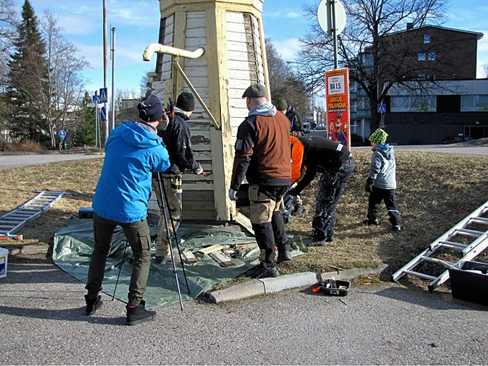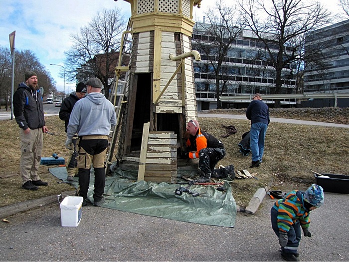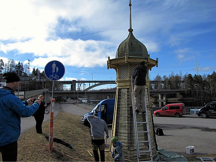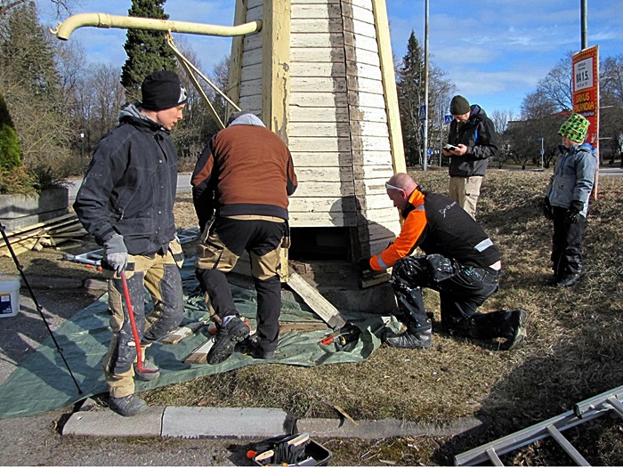 Päivän kuluessa työ eteni korjauksin seuraavaan vaiheeseen, jolloin kaivo saa pinnalleen uuden maalin toukokuun kuluessa.