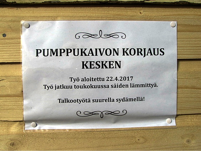 Suomen itsenäisyyden juhlavuoden merkeissä herätteli hienopuuseppä Jari Karppinen talkoolaisryhmän päivittämään pumppukaivon kuntoa, korjausta ja maalausta.