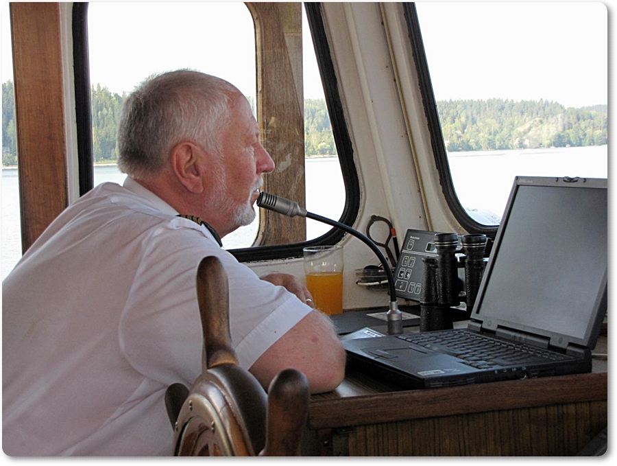 satamapalveluja. Laivan kapteeni Kari Suomalainen (kuva) siirtyi mikrofonin