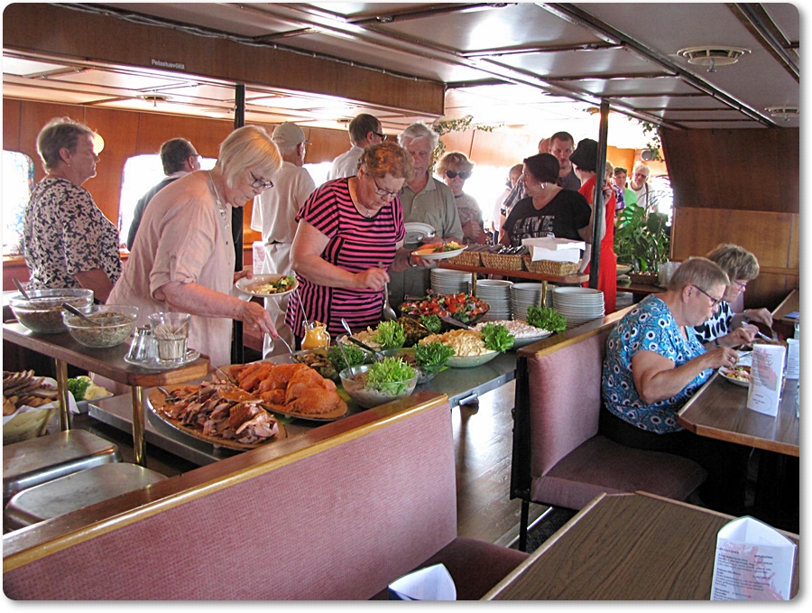Kun Vääksyn kanava oli ohitettu, kapteeni kutsui lounaspöytään. Monet