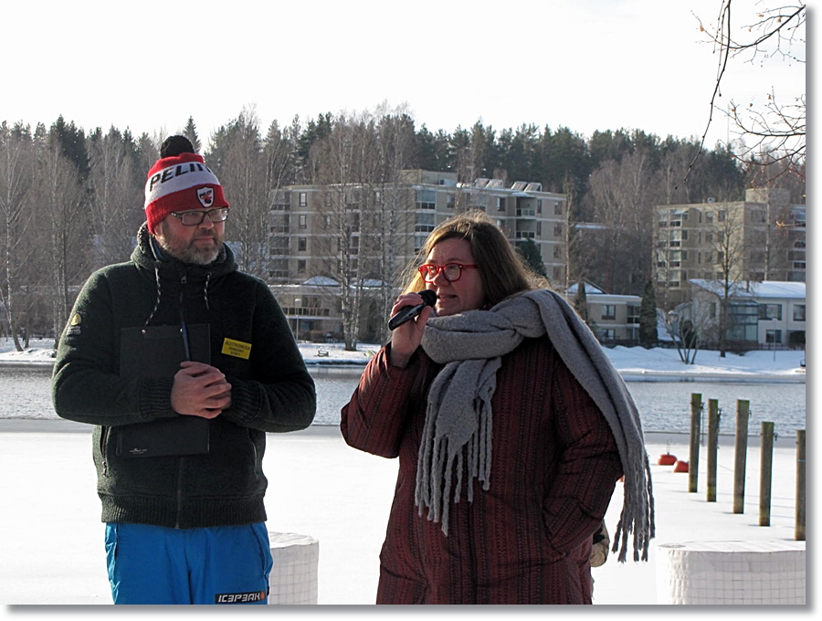 kesäisen säätuulahduksen arviointihetkeen asti. Jääjuhlien kuuluttaja Ossi Arvela luovutti palkinnon voittajalle ja jakoi kaikille osanottajille muistolahjat Heinolasta.