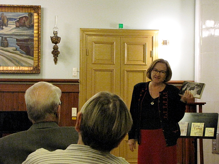 Puheenvuoronsa päätteeksi Peltola luki osan tulevan kirjan takakannen